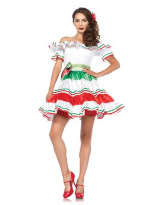 Look festive for any fiesta in this senorita dress! Hit the dance floor and get ready to cha-cha the night away in this colorfully ruffled dress! Includes: Dress Closure: Zipper Material: Polyester Care: Hand wash Imported Note: Hair piece and shoes sold separately
